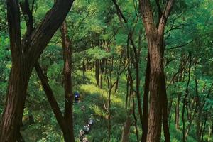 山东药乡国家森林公园位于济南泰安交界处,距济南市区约 33 公里,总面积 1233 公顷,森林覆盖率 95%.